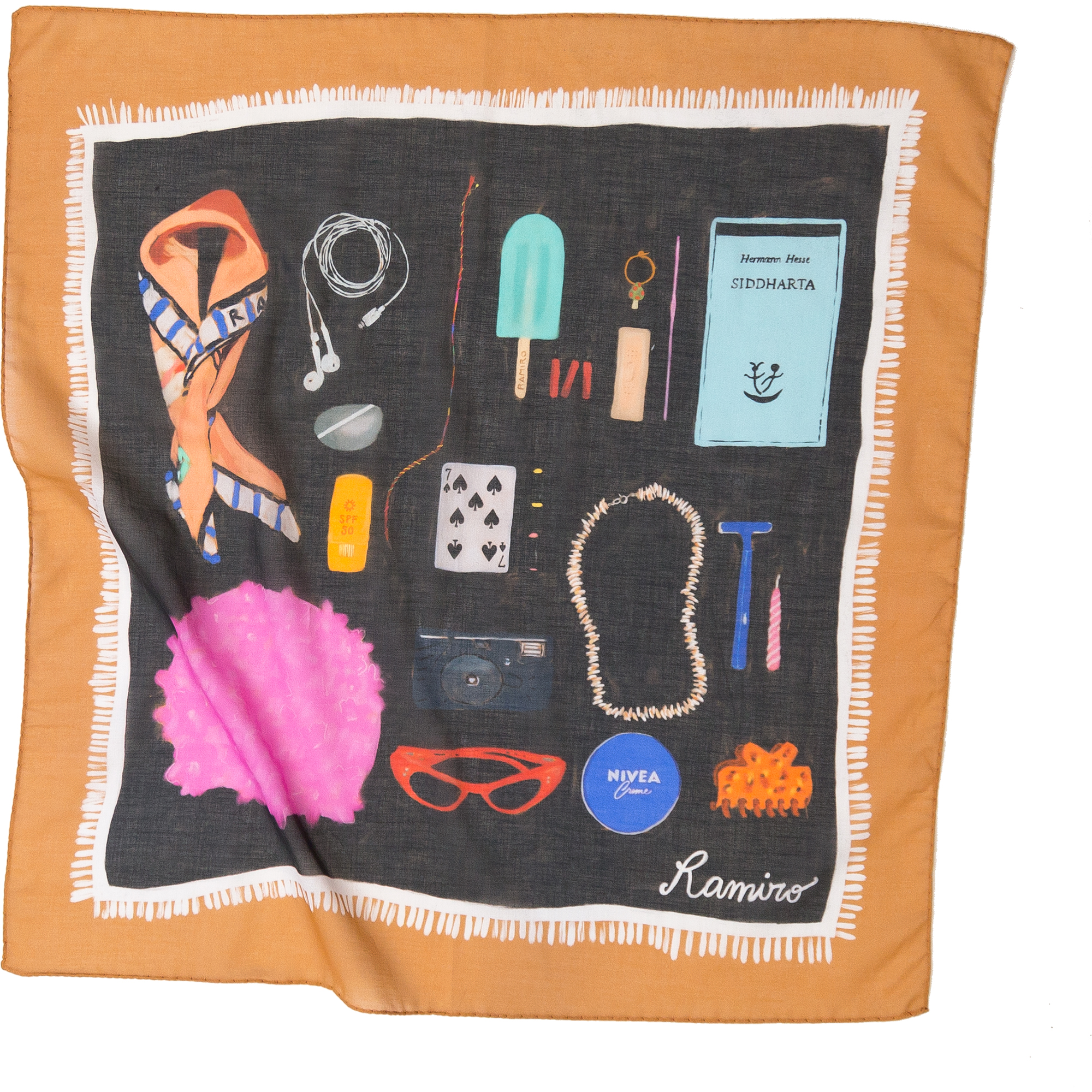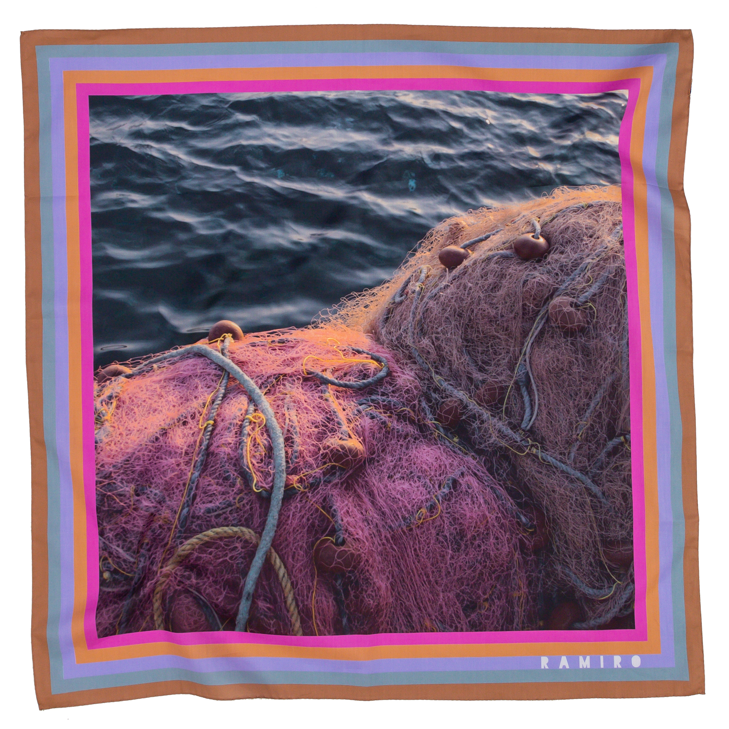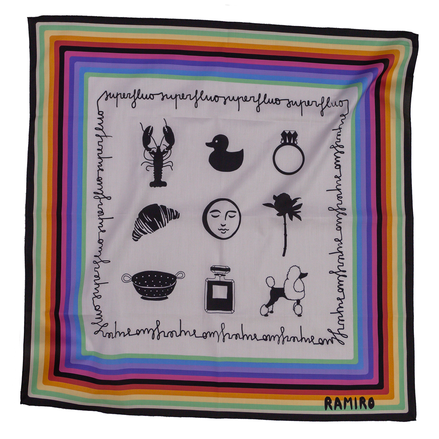 Ramiro’s creations are fragments of reality, framed and printed on silk or cotton by an historic italian company and hemmed by a studio in Como.